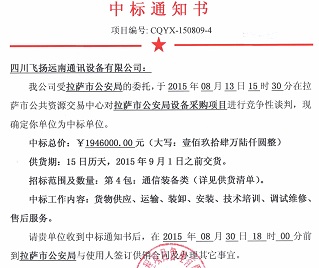 中標拉薩公安局設備采購項目(194.6萬) 作者:管理員 來源:飛揚遠南 瀏覽:1804次 更新:2015-11-6 |
